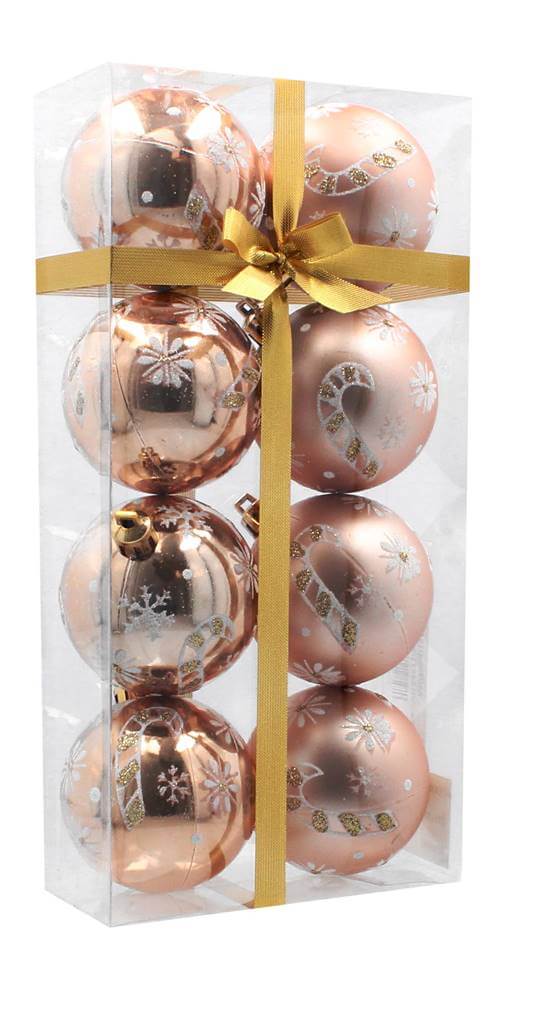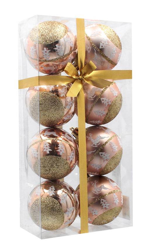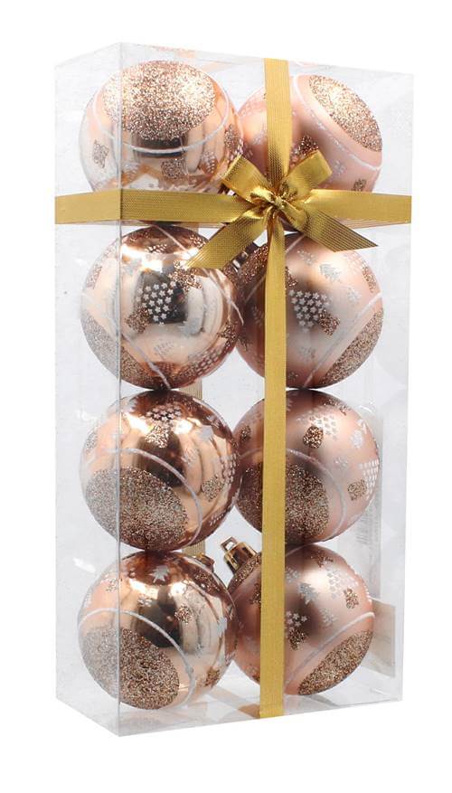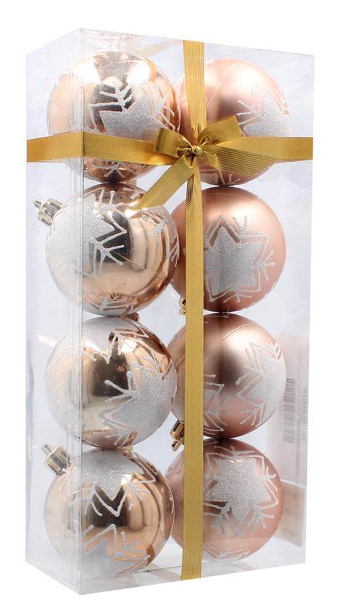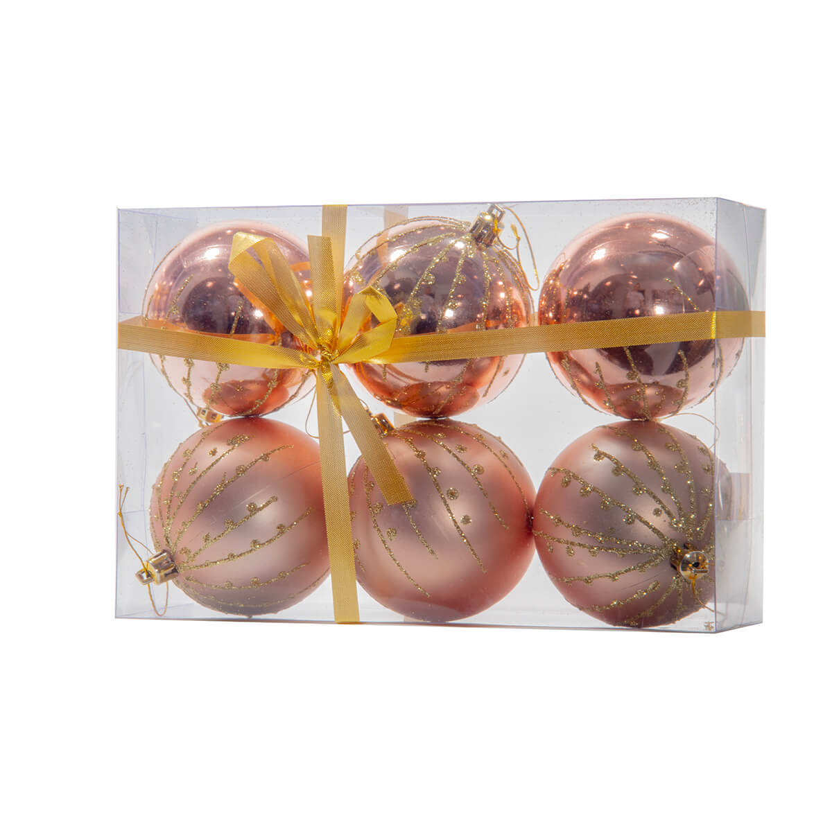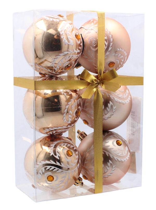 Komplet nowoczesnych, pięknych bombek. Urokliwie prezentują się na choince. W komplecie znajdują się 3 bombki matowe oraz 3 błyszczące z wzornictwem do wyboru. Bombki nadają się idealnie jako ozdoba świąteczna do powieszenia na oknie lub choince. Wykonane z tworzywa sztucznego, nietłukące się.