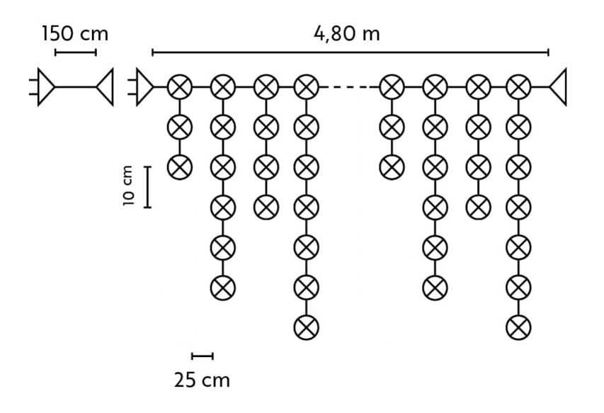Kurtyna jest wysokoodporna na trudne warunki atmosferyczne, duża średnica oprawki zapewnia intensywny efekt świetlny.