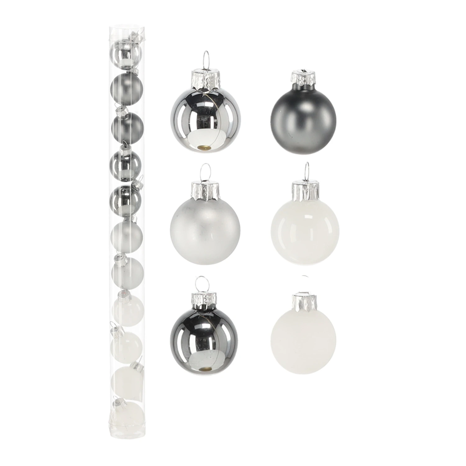 Bombki choinkowe szklane 3cm kpl. 11 szt. biało-srebrne w tubie