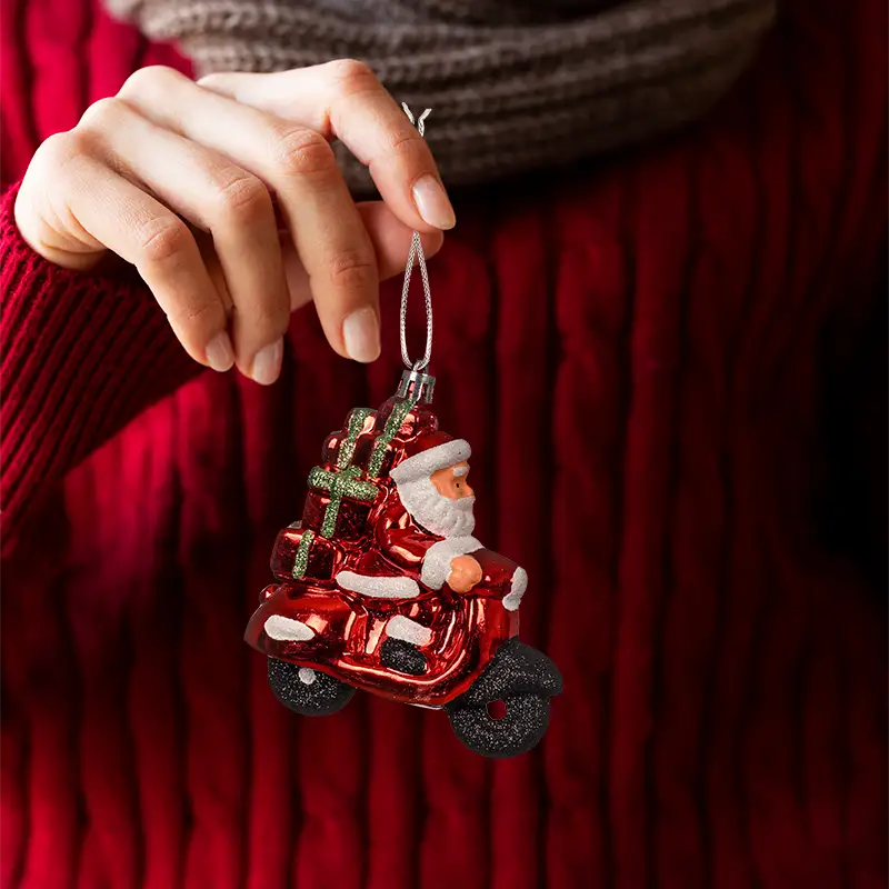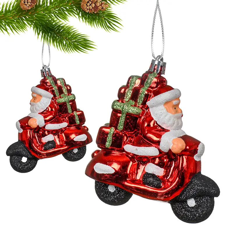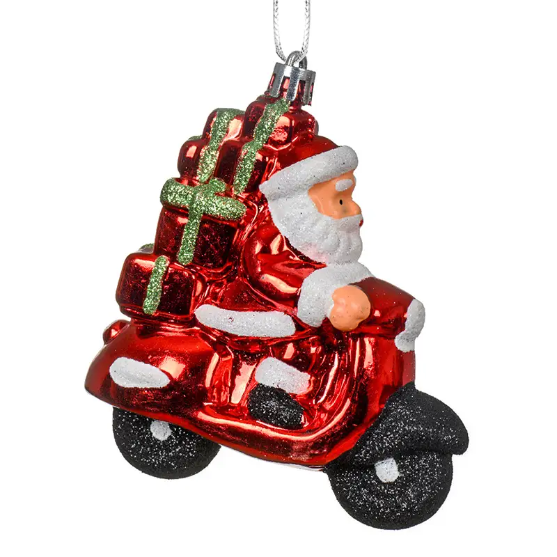 Czerwona zawieszka choinkowa - Święty Mikołaj na skuterze 10 cm