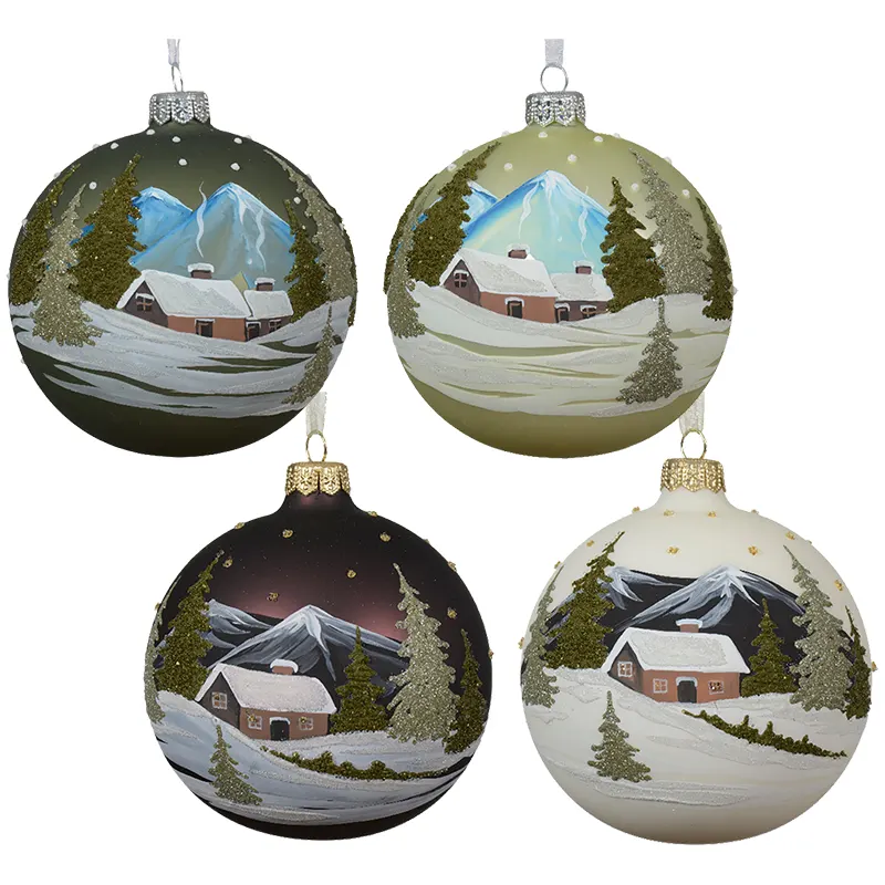 Domek w górach - Szklana bombka choinkowa 10 cm