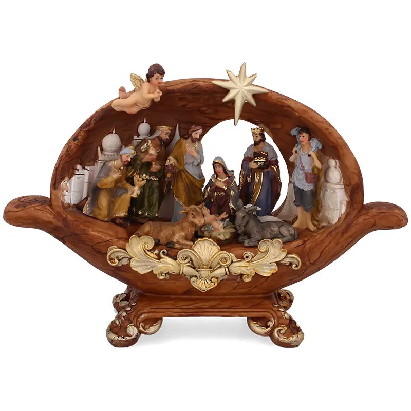 Wprowadź do swojego domu prawdziwą magię Świąt Bożego Narodzenia dzięki tej niezwykłej szopce bożonarodzeniowej w kształcie groty. To nie tylko dekoracja, ale także opowieść – pełna symboliki, głębi i duchowego przesłania. Precyzyjnie wykonane postacie Świętej Rodziny, Trzech Króli, pasterzy oraz zwierząt zachwycają realizmem i dopracowaniem detali. Całość zamknięta jest w eleganckiej formie groty z ornamentem w stylu barokowym, której naturalna faktura drewna dodaje ciepła i autentyczności. To dekoracja, która nie tylko zdobi, ale i wzrusza – doskonale sprawdzi się zarówno w domowym wnętrzu, jak i w miejscu kultu czy na prezent dla bliskiej osoby. Wykonana z trwałych materiałów, które zapewniają odporność na czynniki zewnętrzne i zachowanie piękna przez wiele sezonów.