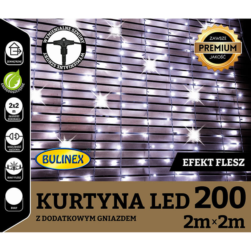 Kurtyna 200 LED z gniazdem umożliwiającym łączenie ze sobą kolejnych kompletów (max 5 szt.)