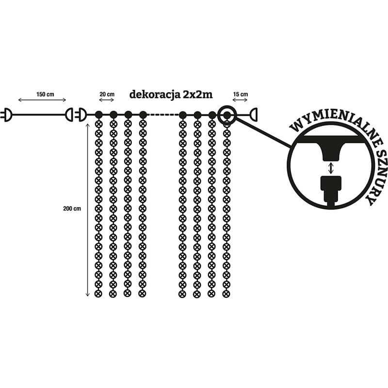 Szerokość dekoracji: 2m + 1,5m przewodu zasilającego