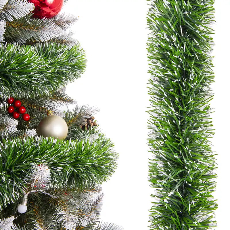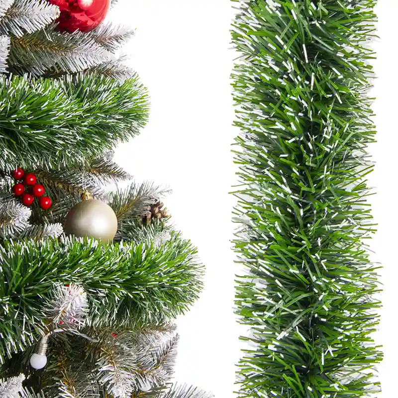 Łańcuch w kolorze zielonym z białymi dodatkami jest idealnym dodatkiem do świątecznej choinki. Łańcuch pozwala dodać dodatkowego uroku oraz blasku w okresie świątecznym. Sprawdza się także jako ozdoba poręczy schodów lub karnisza. Girlanda charakteryzuje się dużą lekkością dzięki czemu nie obciąża gałęzi choinki. Długość łańcucha wynosi aż 6 metrów, dzięki czemu pozwala na wszechstronne zastosowanie go w różnych ozdobach świątecznych.
