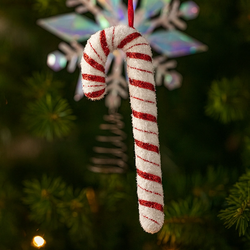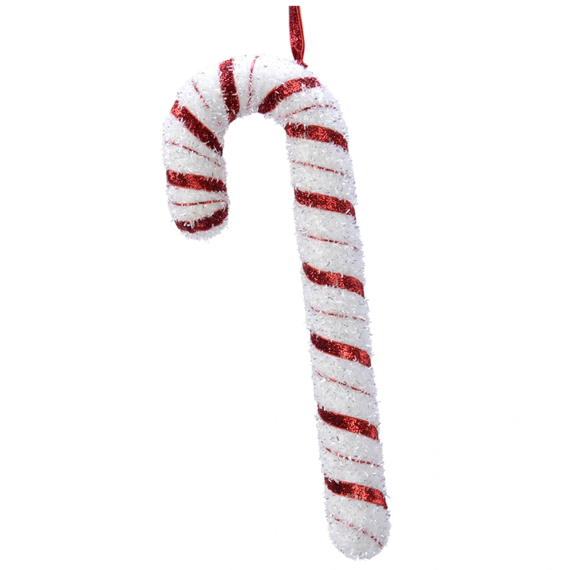 Świąteczna dekoracja w kształcie laski cukrowej – biało-czerwona z brokatem
