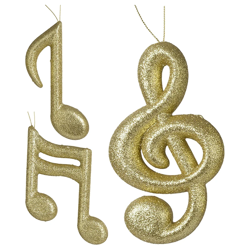 Wprowadź świąteczną melodię do swojej choinki dzięki niezwykłym zawieszkom w kształcie nut i klucza wiolinowego. Te lekkie, a zarazem efektowne dekoracje wykonane zostały z brokatowej pianki w kolorze jasnozłotym, która pięknie mieni się w świetle lampek, dodając aranżacji wyjątkowego blasku i rytmicznej lekkości. Idealne dla miłośników muzyki i nietuzinkowych akcentów, te ozdoby będą doskonale prezentować się zarówno na klasycznej, jak i nowoczesnej choince. Do wyboru masz 3 różne wzory, dzięki czemu możesz stworzyć własną, harmonijną kompozycję. Złoty sznureczek umożliwia łatwe zawieszenie w dowolnym miejscu.