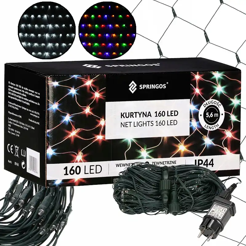 Siatka świetlna pozwoli Ci stworzyć przytulną atmosferę w domu lub ogrodzie. Najbardziej nadaje się do oświetlenia balustrady balkonowej lub żywopłotu. Sieć dostępna w dwóch wariantach kolorystycznych - zimny biały oraz multikolor. Produkt wyposażony w kabel zasilający o długości ok. 3m. To świąteczne oświetlenie nadaje się do wewnątrz oraz na zewnątrz. Posiada certyfikat IP44, oznacza to, że produkt jest odporny na wpływy atmosferyczne, takie jak deszcz i śnieg.