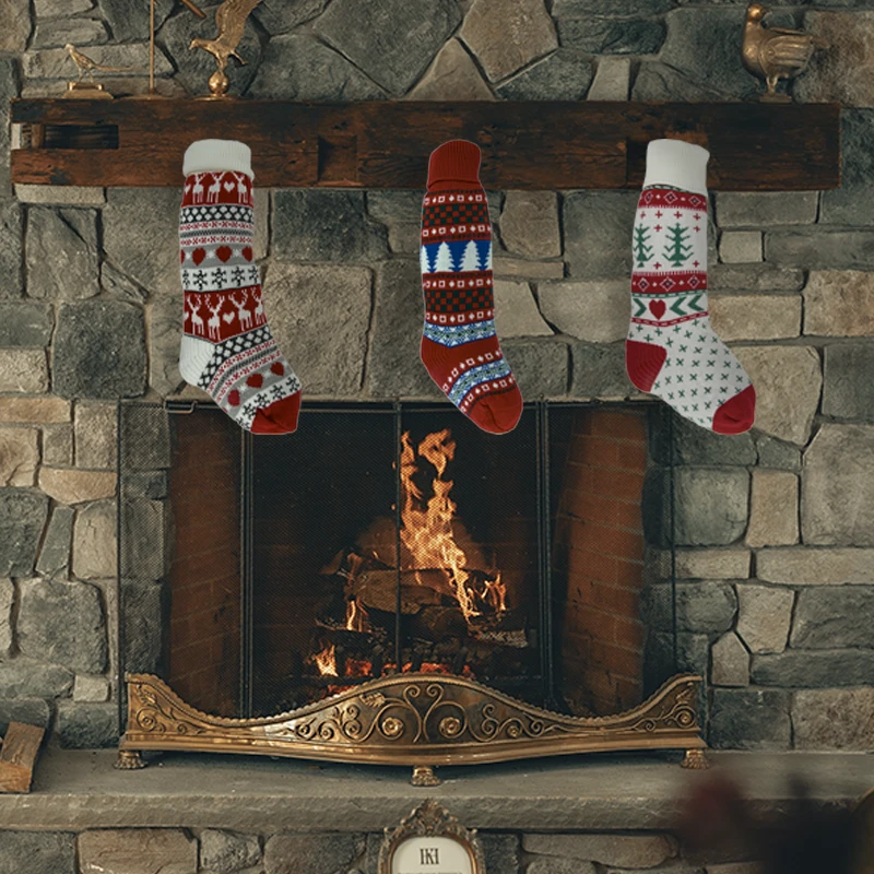 Tę uroczą skarpetę z dzianiny można zawiesić nad kominkiem albo na ścianie.