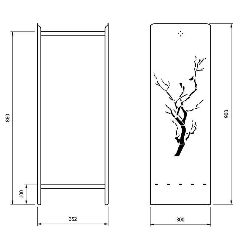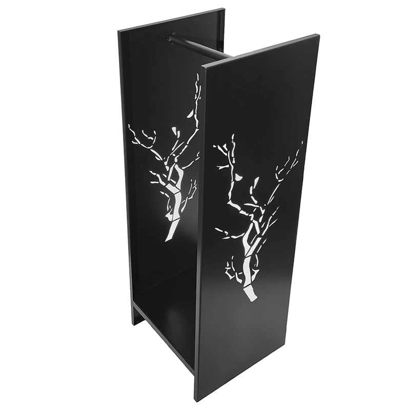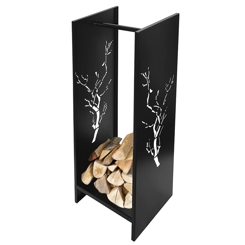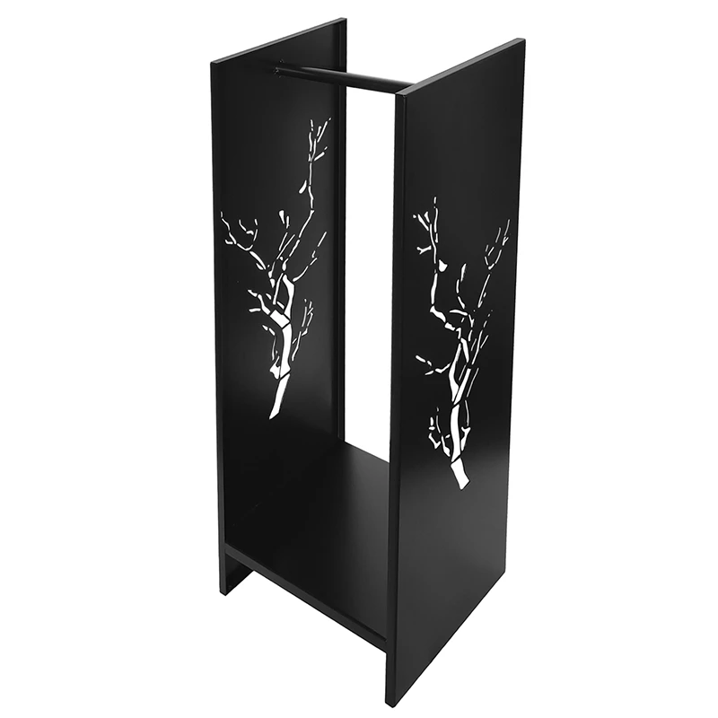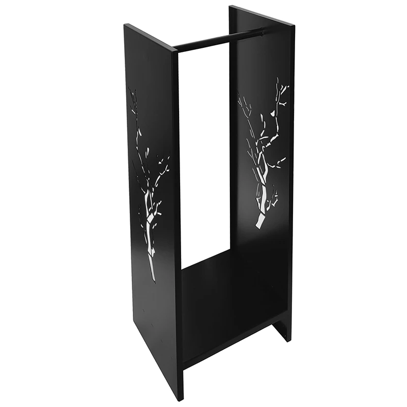 Elegancki metalowy stojak do przechowywania drewna. Specjalna konstrukcja umożliwia w szybki sposób schnięcie drzewa. Charakteryzuje się dużą stabilnością, wysoką wytrzymałością oraz perfekcyjnym wykonaniem stojaka. Idealna dekoracja, która uzupełnia przestrzeń pokoju oraz w ciekawy sposób komponuje się wraz z kominkiem.