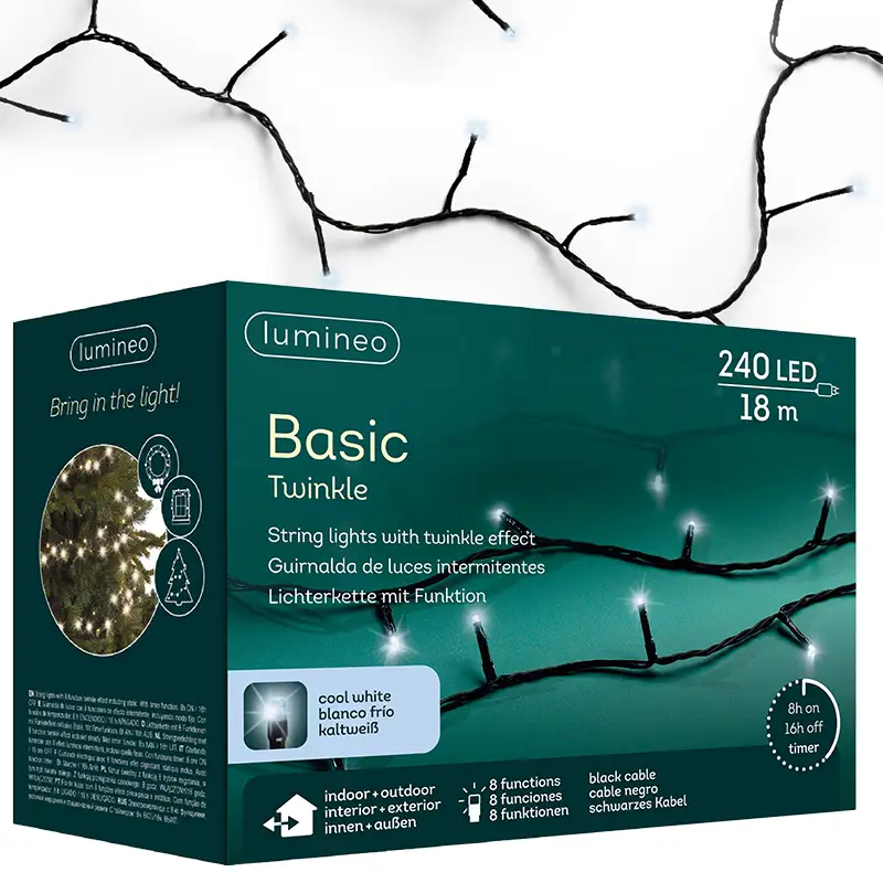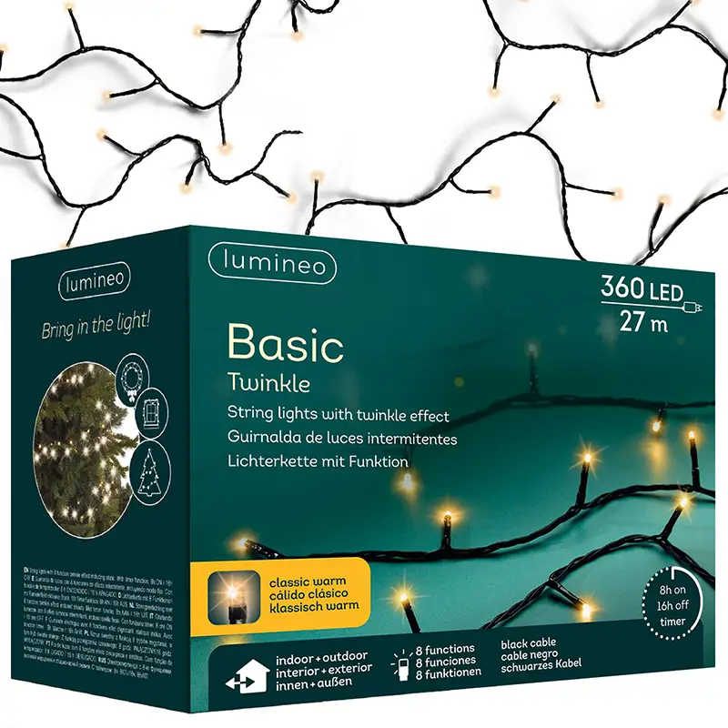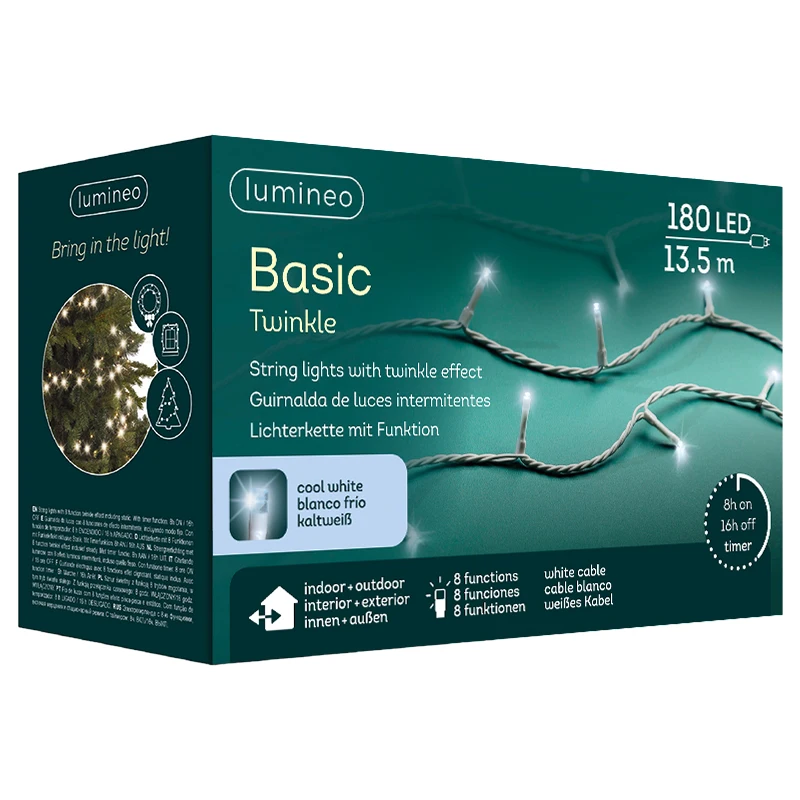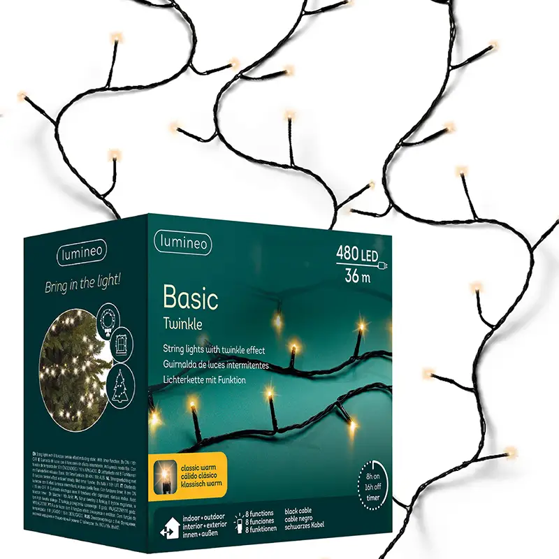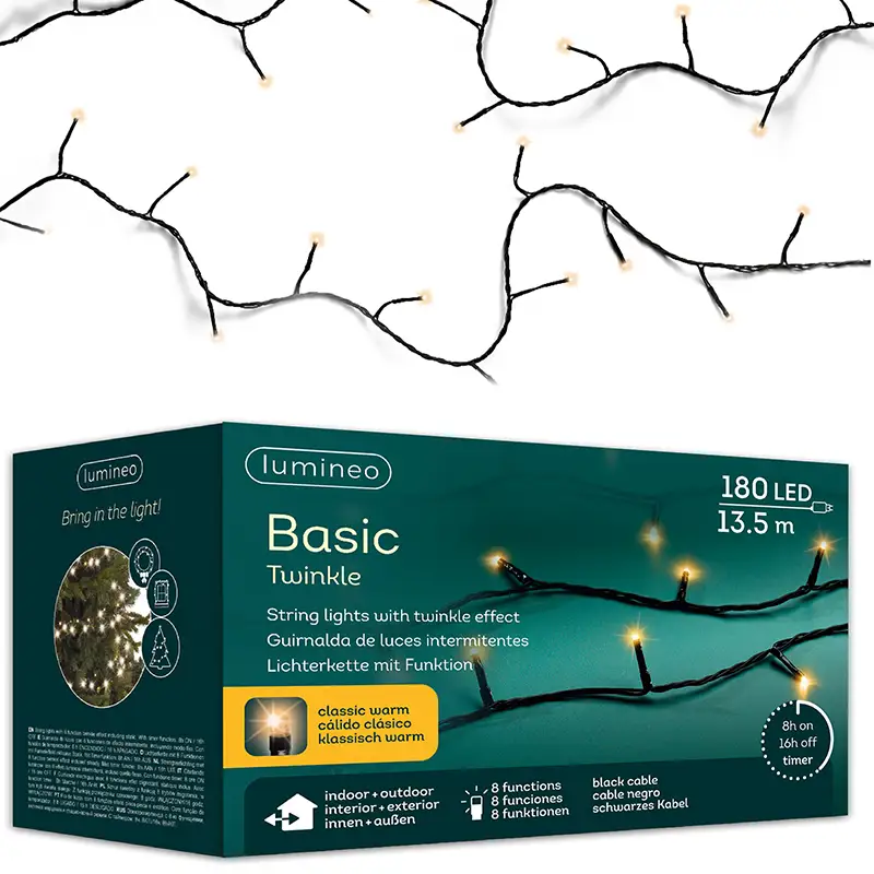Ożyw swoje świąteczne dekoracje dzięki lampkom choinkowym BASIC TWINKLE! Te wszechstronne lampki są dostępne w różnych długościach oraz kolorach. Niezależnie od tego, czy planujesz udekorować wnętrze swojego domu, czy oświetlić zewnętrzny ogród, nasze lampki będą idealnym wyborem, tworząc magiczną atmosferę świąt.