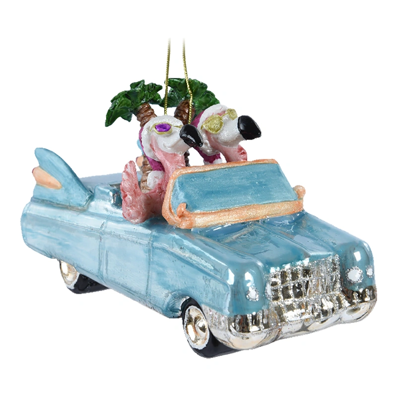 Szklana zawieszka choinkowa - Flamingi w kabriolecie