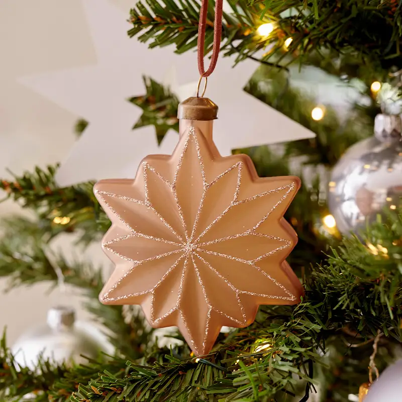 Dodaj blasku swojej choince dzięki wyjątkowej bombce świątecznej Star Glass z brokatem. Wykonana z wysokiej jakości szkła, ta bombka wyróżnia się eleganckim wykończeniem z połyskującym brokatem, który nadaje jej wyjątkowego uroku. Wielokolorowa dekoracja, ozdobiona metalowym korkiem w kolorze brązowym oraz zawieszką z ekologicznej skóry PU, doskonale komponuje się z różnymi stylami wnętrz, od tradycyjnych po nowoczesne. To idealny dodatek do świątecznych dekoracji, który doda magicznego akcentu każdemu drzewku.