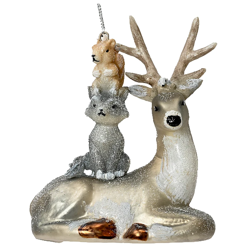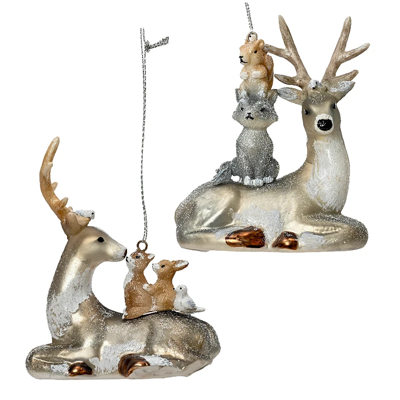 Szklane Jelenie ze zwierzętami - Zawieszki Choinkowe