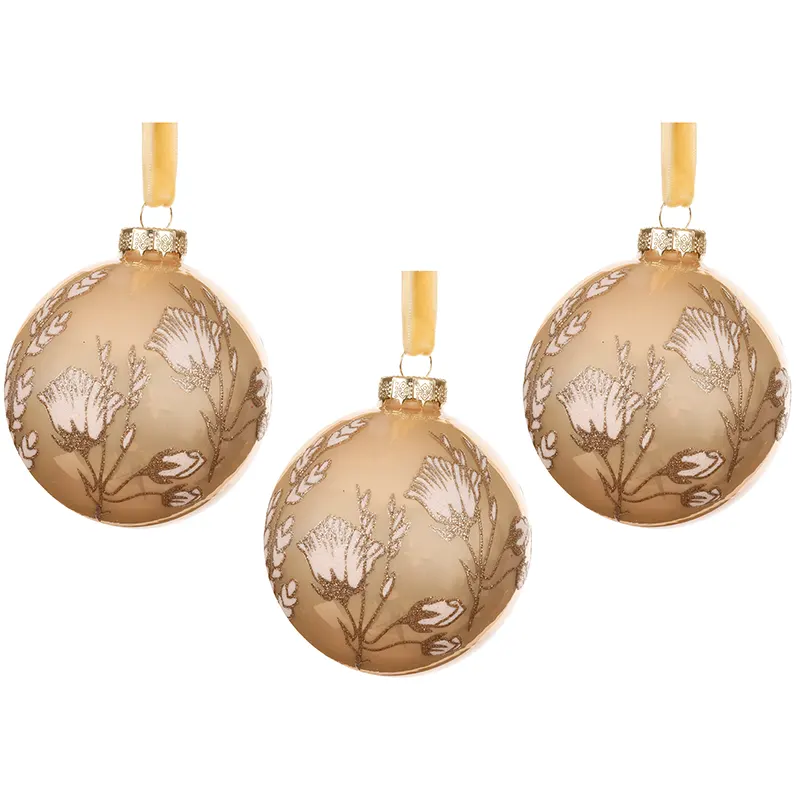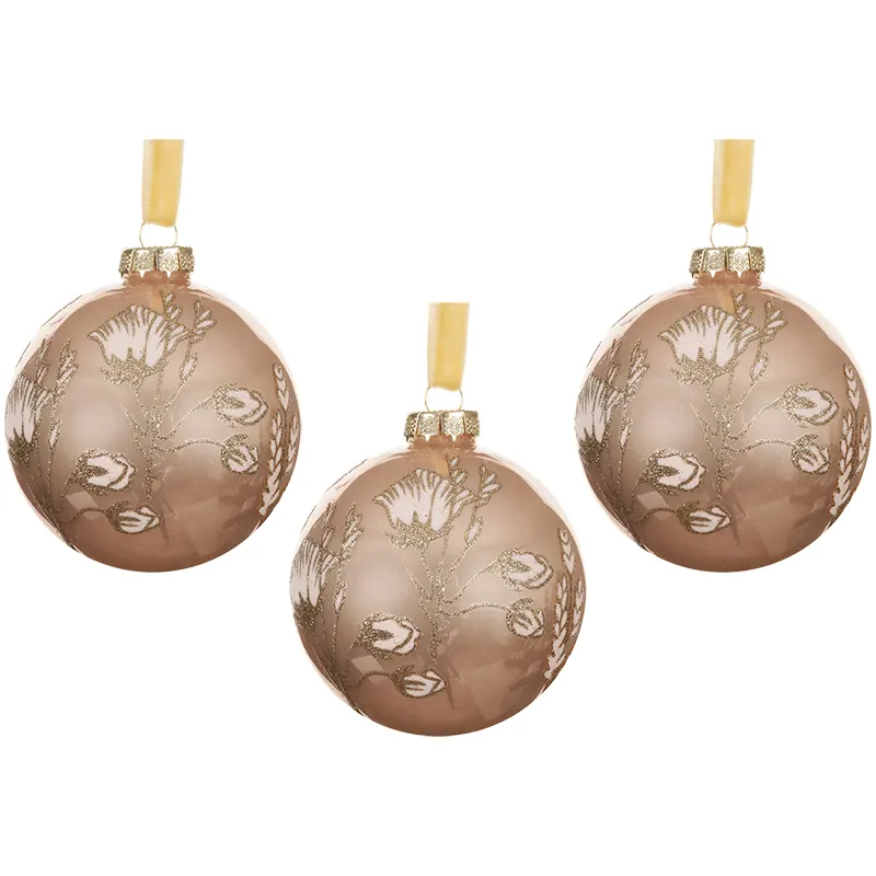 Szklane bombki z florystycznym wzorem – zestaw 3 sztuki