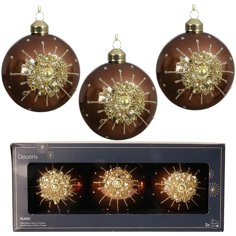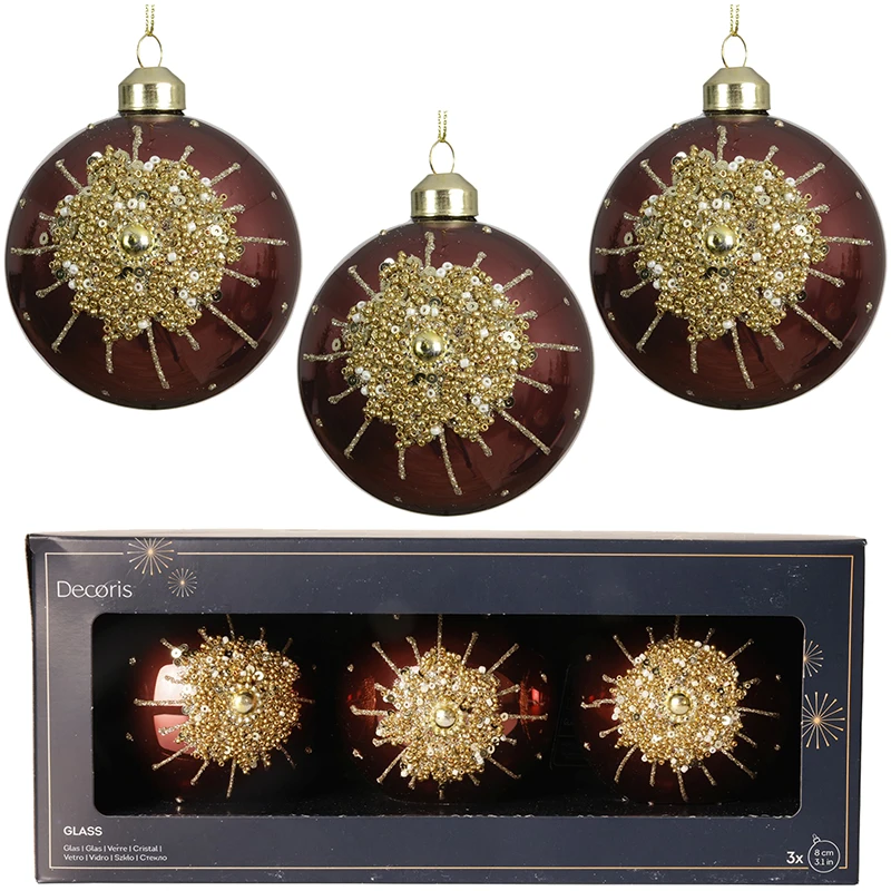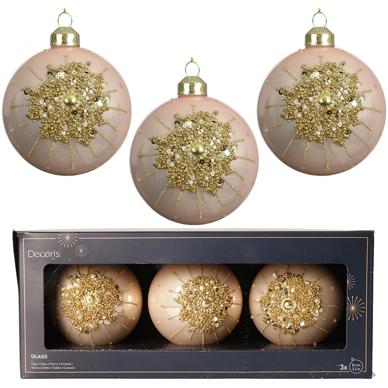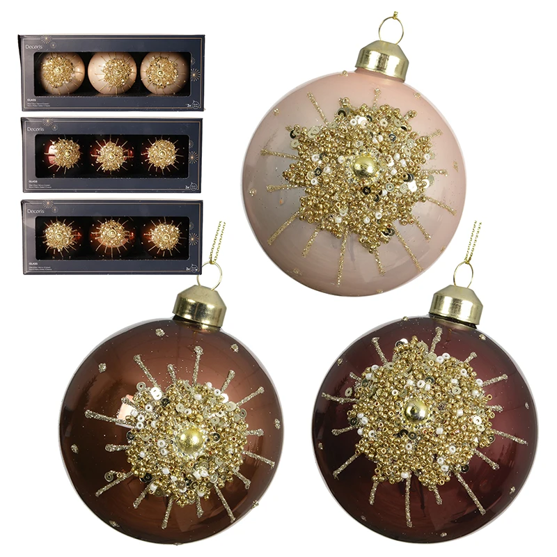 Szklane bombki choinkowe z koralikami 8 cm - kpl. 3 szt.