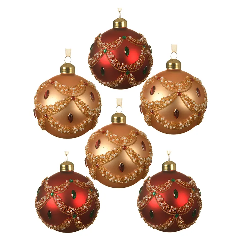 Szklane bombki choinkowe 8 cm – zestaw 6 sztuk z bogatym zdobieniem