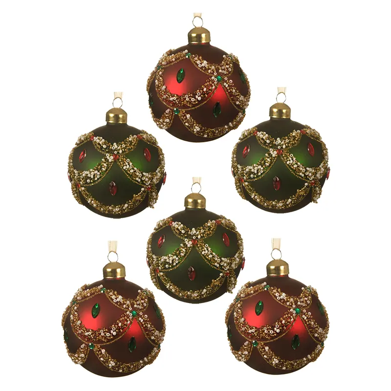 W zestawie znajduje się aż 6 bombek o średnicy 8 cm, zaprojektowanych z dbałością o każdy detal. Do wyboru dwa wyjątkowe warianty kolorystyczne: zielono-bordowy – klasyczny i dostojny, oraz złoto-czerwony – ciepły i efektowny. Oba zestawy idealnie komponują się z tradycyjnymi dekoracjami bożonarodzeniowymi, dodając aranżacji blasku i elegancji.