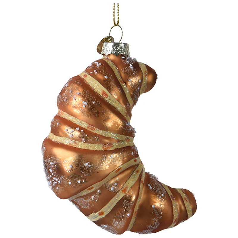 Dodaj odrobinę francuskiego szyku i słodkiego aromatu do swojego świątecznego drzewka z naszymi bombkami w kształcie croissanta i cynamonowej bułeczki. Te szklane dekoracje to nie tylko ozdoby, ale i kulinarna inspiracja, która wprowadzi przytulną atmosferę świątecznego poranka. Croissant, o delikatnym złotym wykończeniu z połyskującymi akcentami brokatu, wygląda tak apetycznie, jakby właśnie wyszedł z piekarni. Cynamonowa bułeczka z białym, lukrowym wzorem przywodzi na myśl słodkie chwile przy kawie. Każda bombka jest unikatowa, a ich realistyczne detale sprawiają, że są nieodparcie urocze.