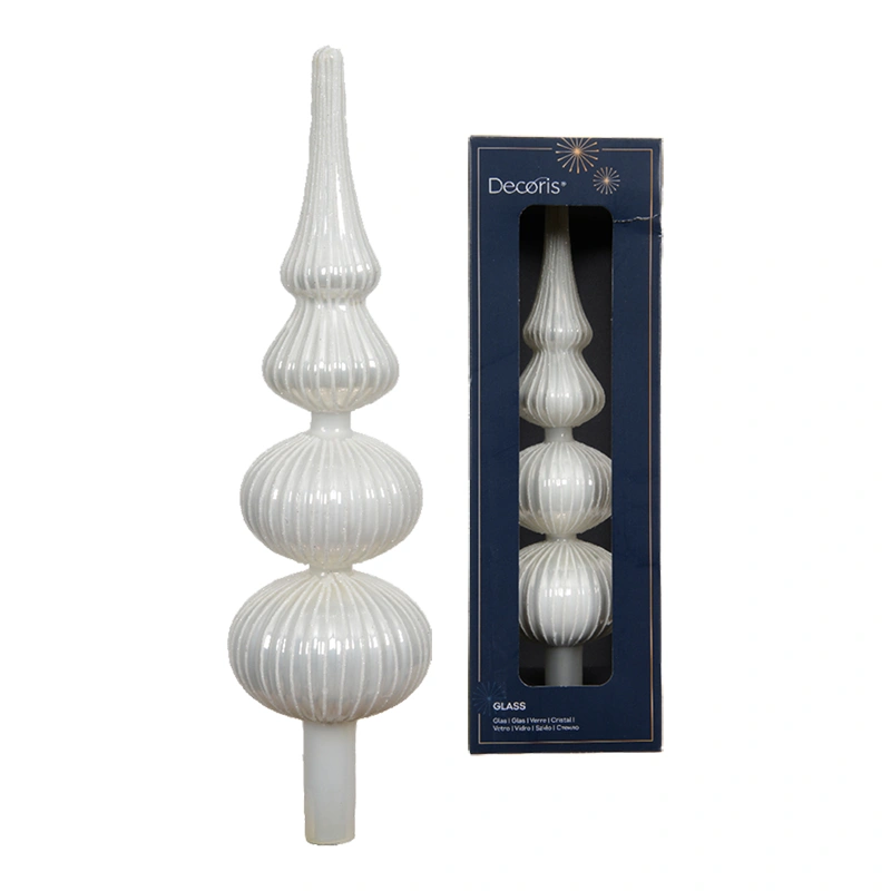 Szklany biały szpic choinkowy - 31 cm
