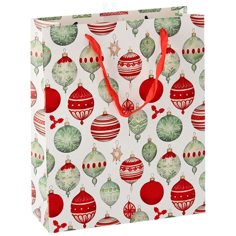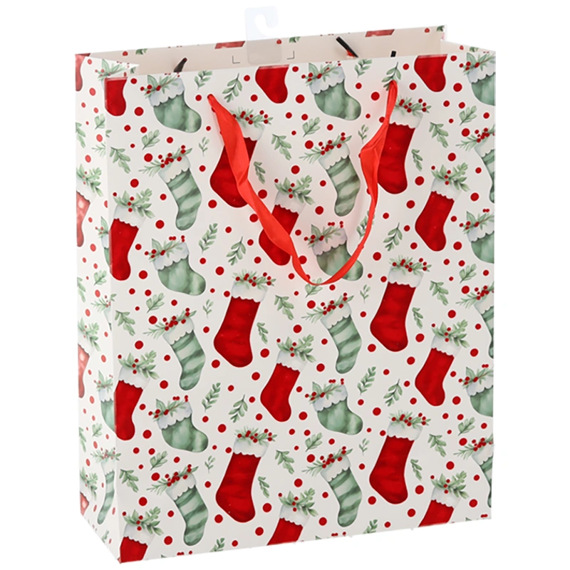 Piękne i praktyczne torby prezentowe, które wniosą świąteczny nastrój już przy pierwszym spojrzeniu. Dostępne w trzech bajecznych wzorach – z bombkami, skarpetkami oraz gałązkami ostrokrzewu – idealnie sprawdzą się jako eleganckie opakowanie na świąteczne upominki. Każda torba została wykonana z wysokiej jakości papieru, co zapewnia nie tylko trwałość, ale również elegancki wygląd. Żywe kolory i detale graficzne przyciągają wzrok i dodają uroku każdemu prezentowi. Wygodne uchwyty z czerwonej wstążki ułatwiają przenoszenie i dodają torbom elegancji. Dzięki dużemu formatowi bez trudu zmieścisz w niej książki, ubrania, kosmetyki czy zestawy prezentowe. To idealne rozwiązanie dla wszystkich, którzy cenią estetykę i chcą podkreślić wyjątkowość swoich podarunków.