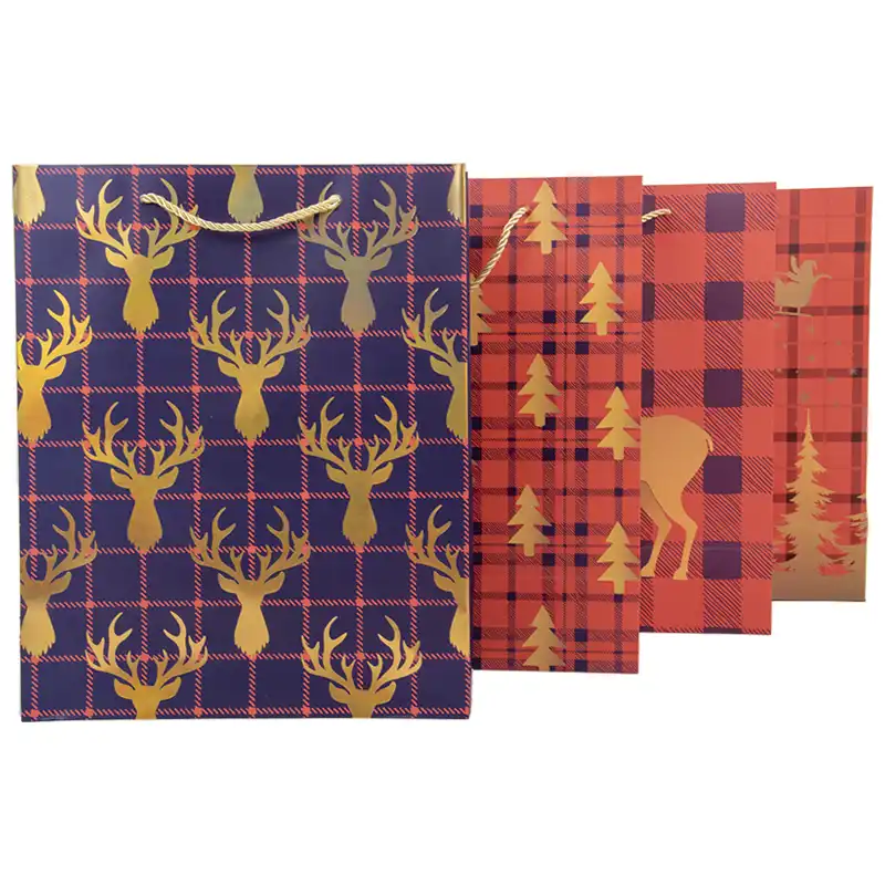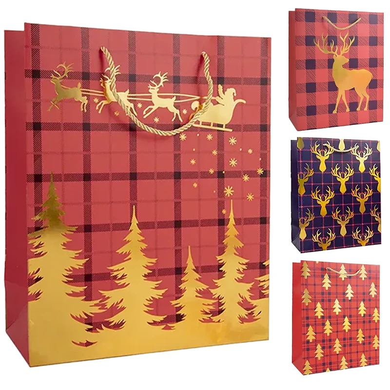 Papierowe torebki na prezenty w różnych wzorach oraz dwóch kolorach. Torebki idealnie sprawdzą się jako opakowanie na prezent lub dekoracja pod choinką. Można ją również wykorzystać do Bożonarodzeniowej sesji zdjęciowej.