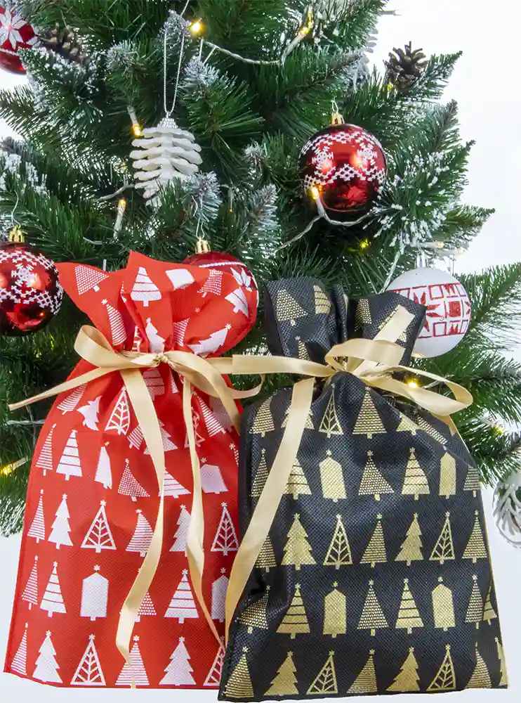 Worek na prezenty to świetna alternatywna dla zwykłych torebek prezentowych. Posiada wstążkę do zaciskania i wiązania. Znacznie bardziej praktyczny niż tradycyjna torebka! Dostępny w dwóch wariantach kolorystycznych: czerwono-białym oraz czarno-złotym.