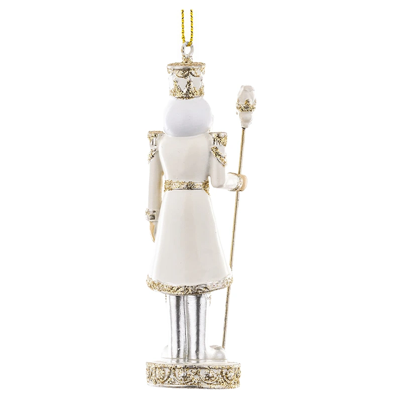 Zawieszka choinkowa - Biało-złoty dziadek do orzechów 10,5 cm