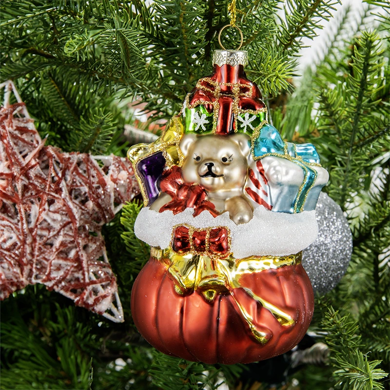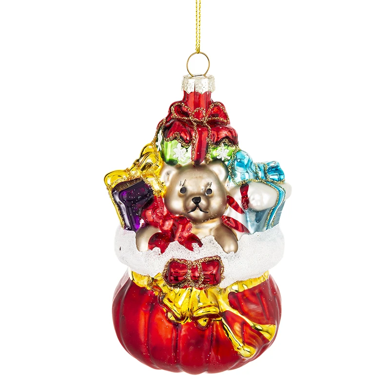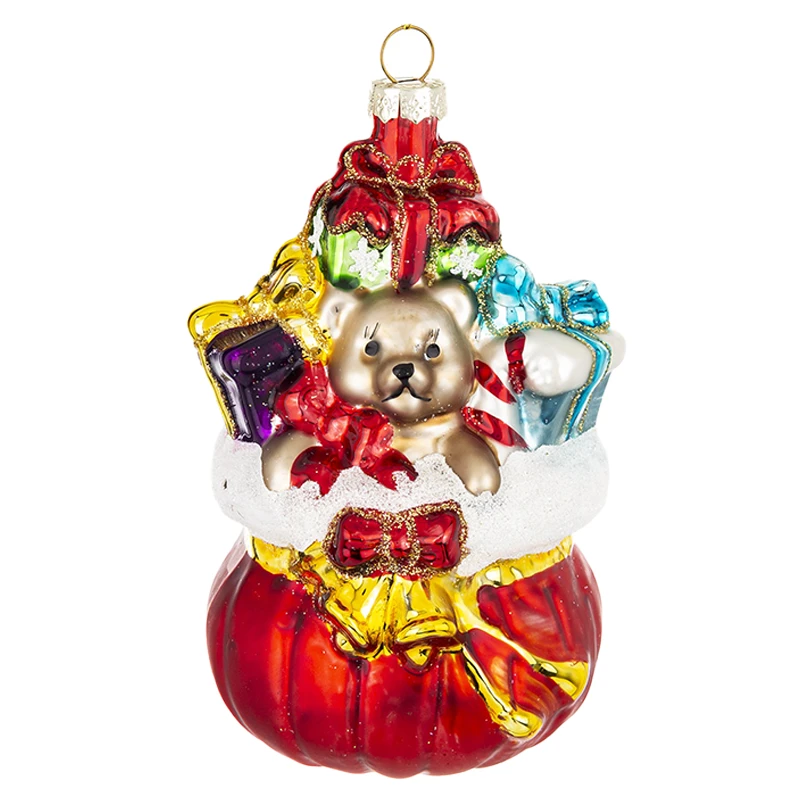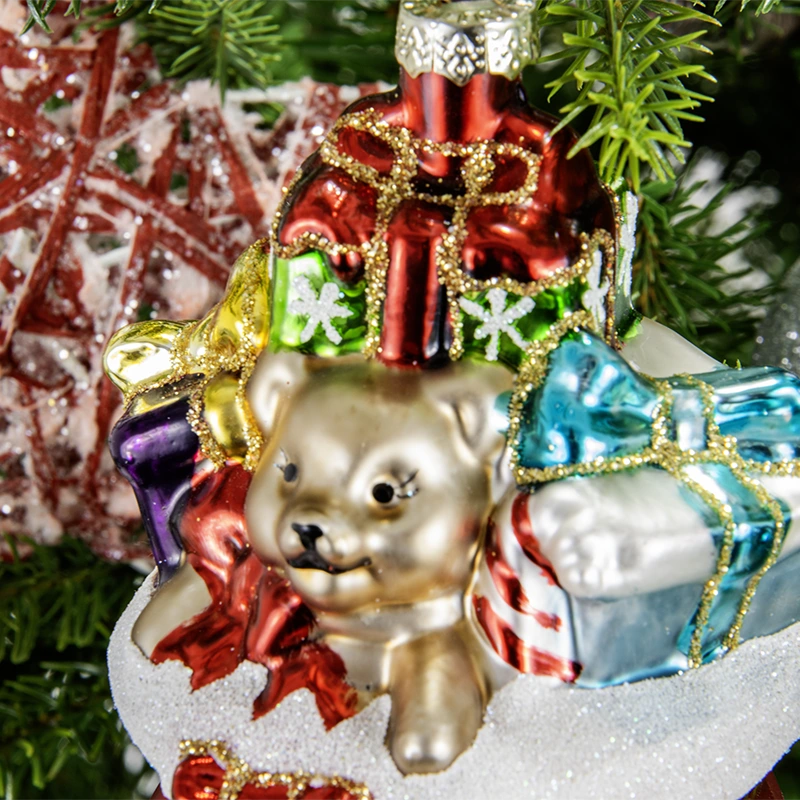 Szklana Zawieszka - Worek z Prezentami z Uroczym Misiem