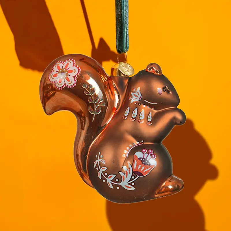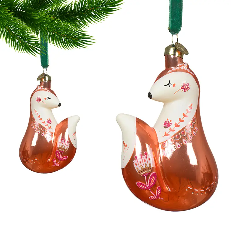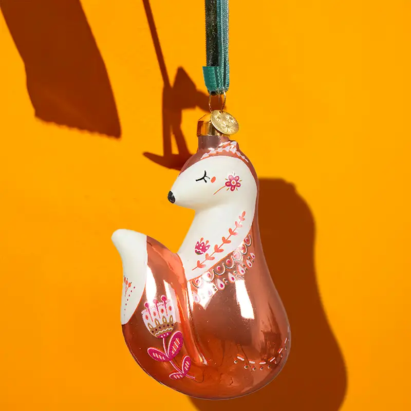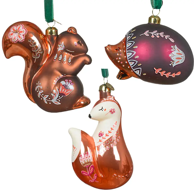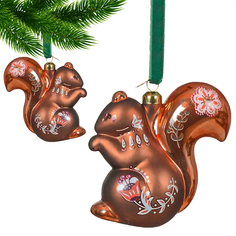 Dodaj urok i elegancję swojej świątecznej dekoracji dzięki szklanym bombkom z motywem zwierzęcym, ozdobionym delikatnym nadrukiem kwiatowym. Każda bombka została wykonana z wysokiej jakości szkła i wyposażona w luksusowy metalowy korek w kolorze złotym oraz aksamitną, ciemnozieloną wstążkę, co nadaje im wyrafinowany charakter. Bombki dostępne są w trzech uroczych wzorach do wyboru:
