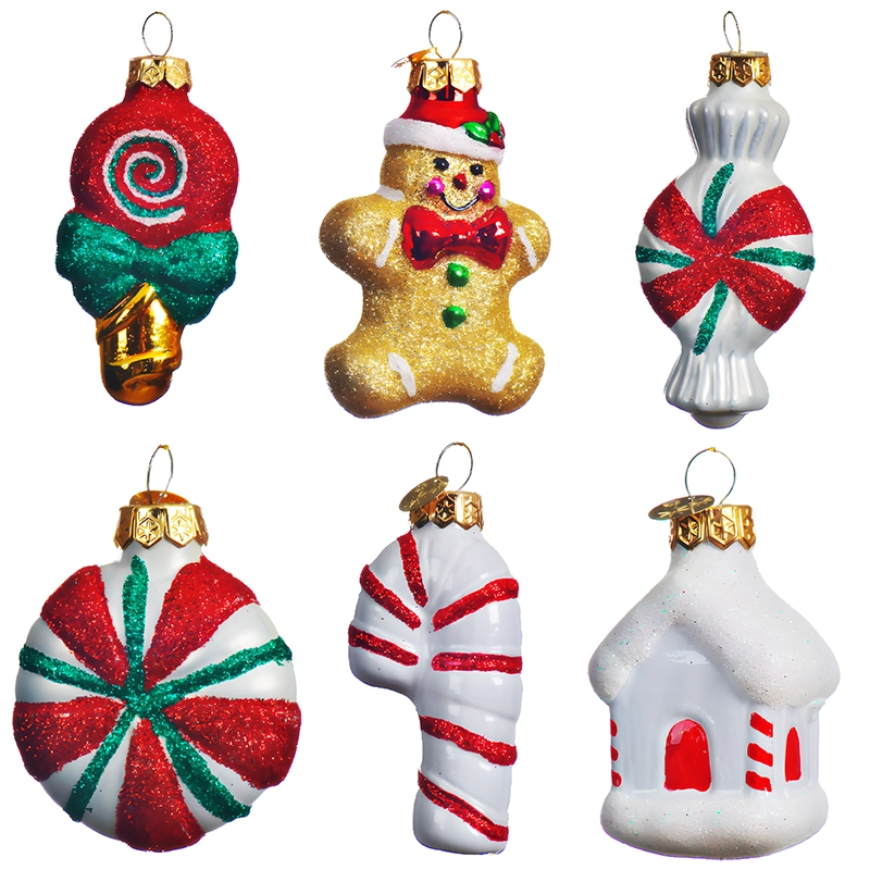 Zestaw 6 Szklanych Zawieszek na Choinkę – Świąteczna Słodycz i Urok Tradycji