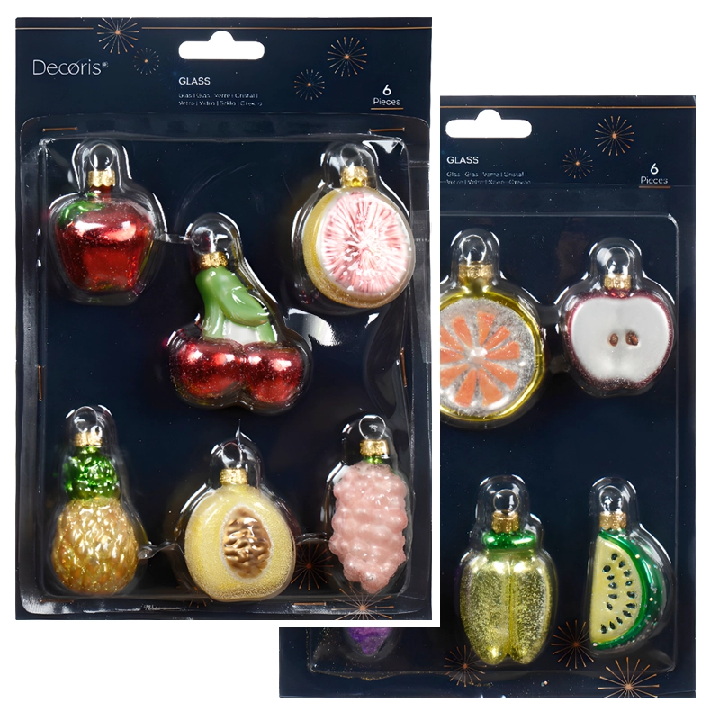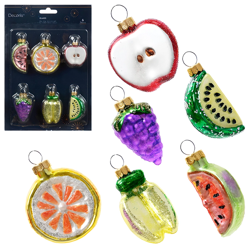 Zestaw Zawieszek Choinkowych - Szklane Owoce Mix 6 szt.